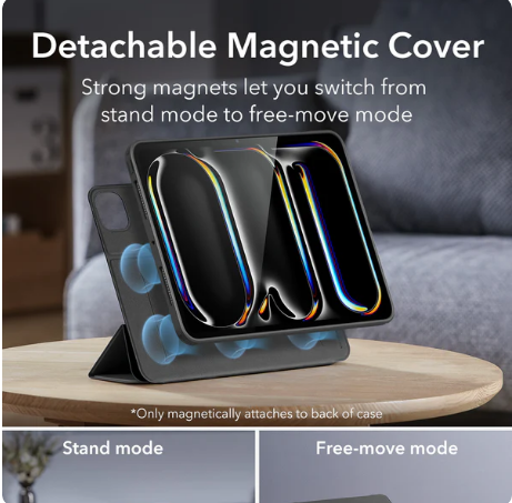 Detachable Magnetic Cover: the strong magnets in the cover of this iPad Pro case make it easy to attach to the back case and fold it up into a stable stand with multiple landscape and portrait modes, or remove it completely for better ergonomics while gaming